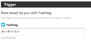 トリガーは企画主催者ツイッターが、指定のハッシュタグをツイートしたら(RTも含まれます)